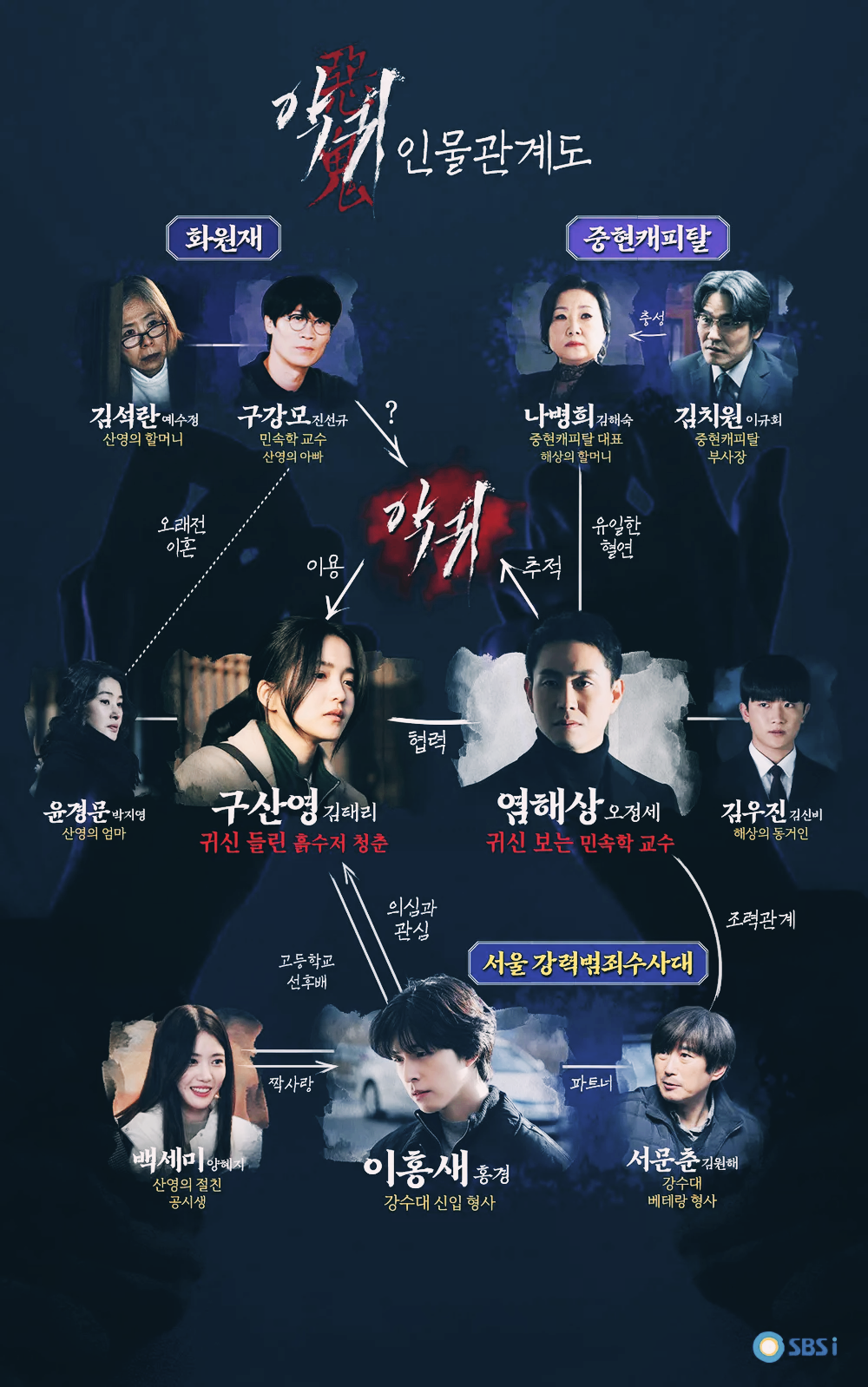 민속학 교수로 부유한 집안의 외아들 다운 명품 수트와 시계, 고급 외제차 등을 갖추고 있습니다. 항상 허공을 응시하고 언제나 어두운 옷만 입는 해상은 어렸을 때부터 귀와 신을 볼 수 있는 능력이 있었습니다.
