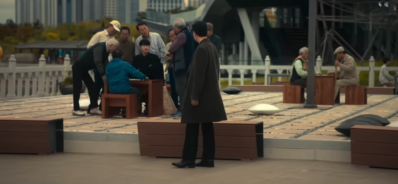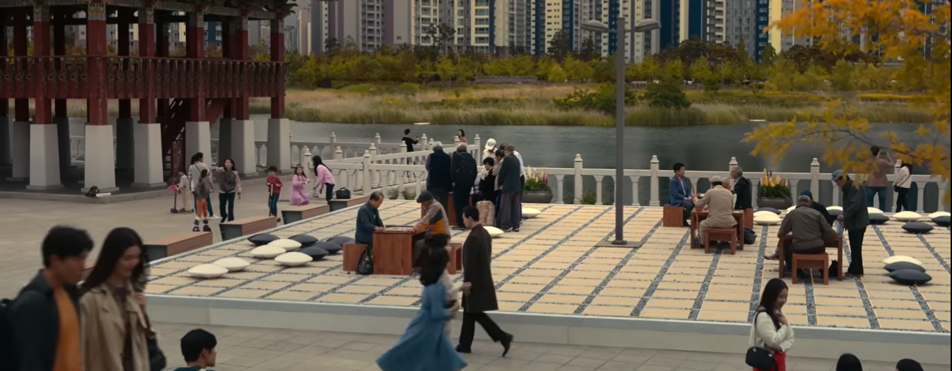 멋진 호수공원과 정자가 어우러진 곳에 자이언트 바둑돌로 장식이 되어 있고, 중간중간 놓인 테이블에서 진짜 바둑도 둘 수 있는 곳이요. <더글로리>에서는 바둑을 좋아하는 하도영이 아마 개인적인 프로젝트로 만든 곳인 것 같아요.