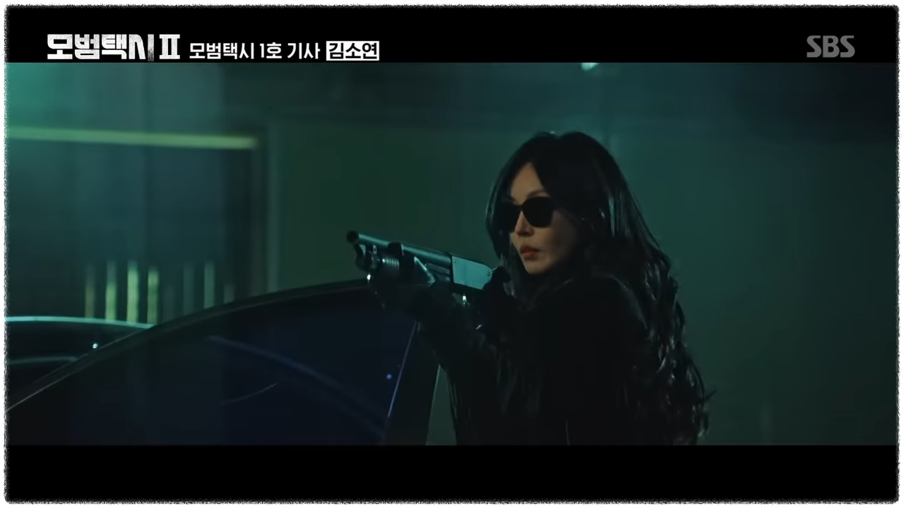 알고보니 그는 위험을 느낀 무지개운수 장성철 대표(김의성)이 삐삐를 친 것을 보고 한달음에 일본에서 달려온 모범택시 1호 기사. 저격수이자 모범택시 1호 기사로 분한 김소연 배우의 올블랙 의상과 화장이 어딘지 낯설지 않은데요, 바로 SBS 드라마로 공전의 히트를 쳤던 드라마 '펜트하우스'의 악녀 천서진을 연상시킵니다. 이를 떠올린 시청자들이라면 제작진들의 위트에 웃지 않을 수 없었을 것 같아요.