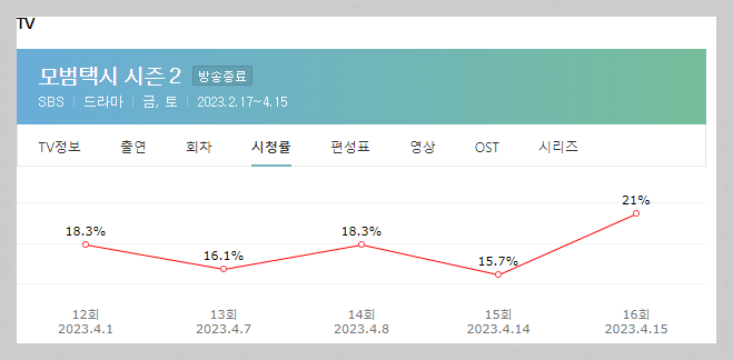 매주 주말마다 사이다 재미를 터뜨려주었던 SBS 모범택시2 드라마가 지난 15일 토요일 인기리에 종영하였습니다.