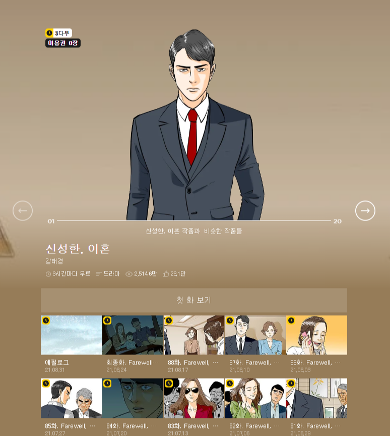 드라마 신성한, 이혼은 원작이 있는 드라마입니다. 강태경 작가의 카카오웹툰의 동명 웹툰을 드라마화 했습니다. 원작의 신성한은 왠지 현재의 신성한과는 이미지가 다릅니다. 더 날카롭고 차가운 느낌이네요. 원작 웹툰은 어머니에게서 받은 상처를 안은 신성한의 모습에 주목하고, 독일에서 피아노로 교수까지 지내고 온 인물이라는 설정은 없다고 하네요.