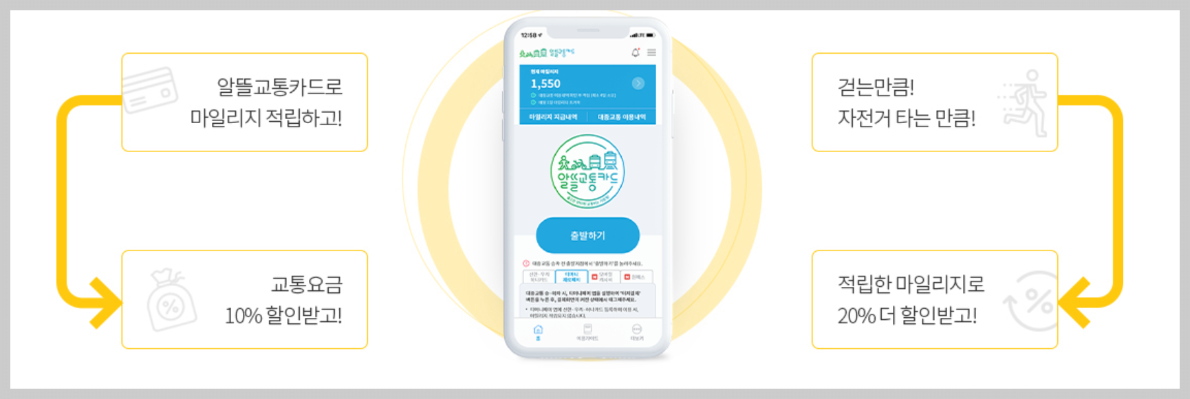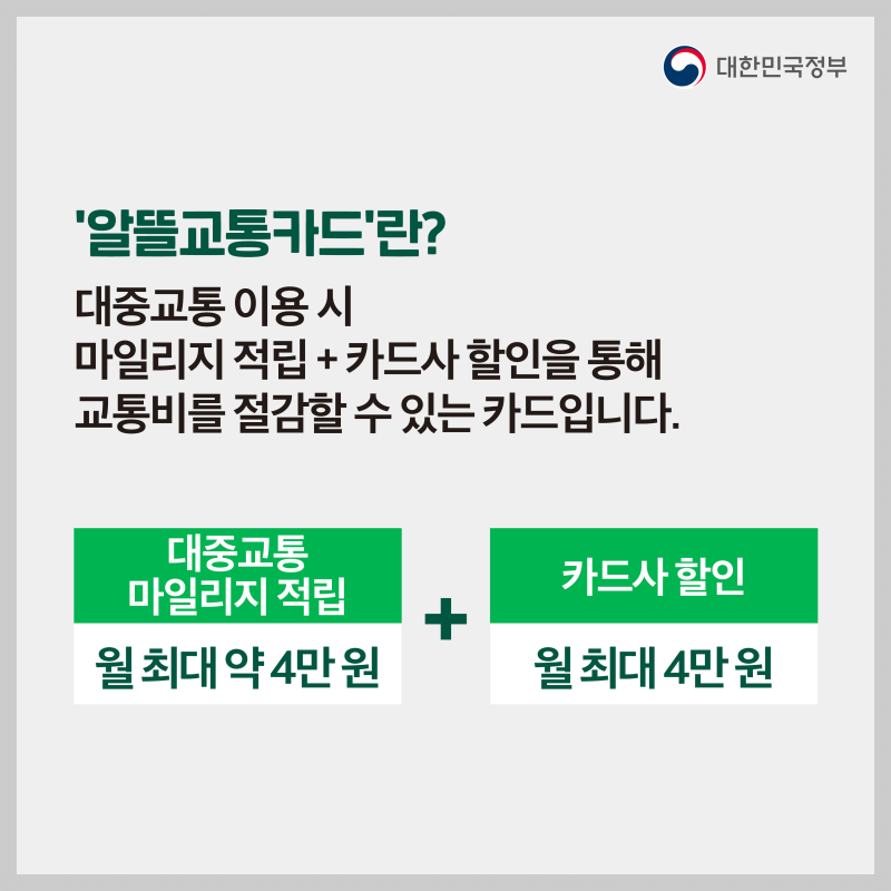 알뜰교통카드란 대중교통을 이용하기 위해 걷거나 자전거로 이동한 거리만큼 마일리지를 적립하여 지급하는 카드입니다. 거기에 카드사의 추가할인 혜택까지 제공되는 교통카드이지요. 2019년 전 정부 시절부터 시작하여 현 정부에서도 이어지는 정책사업입니다. 평소 대중교통을 자주 이용하는 분들에게는 아주 꿀 혜택인데요, 올 7월부터 알뜰교통카드 플러스로 이름을 바꾸어 지원 혜택도 확대된다고 하니 더 관심을 가져보는 것도 좋겠습니다.