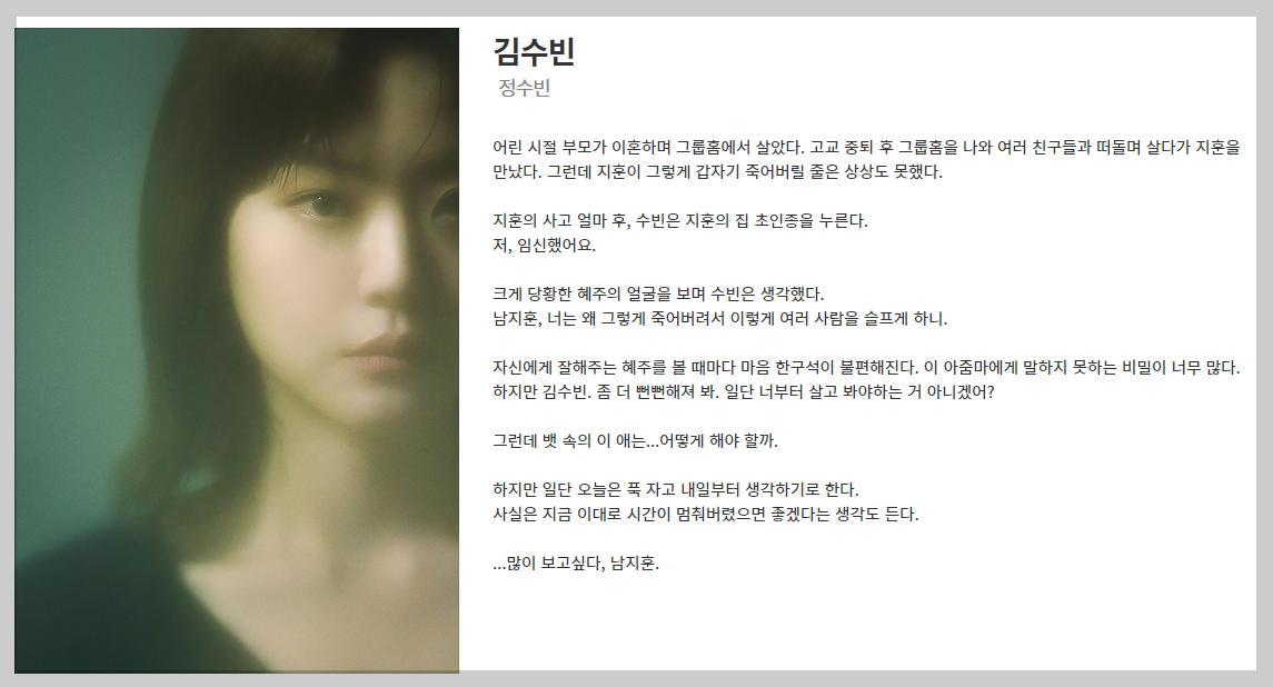 그렇다면 이 드라마의 중심 사건에 그녀가 깊숙이 관련이 되어 있다는 것인데요. 등장인물 소개에도 혜주에게 말하지 못하는 비밀이 아주 많다고 나옵니다.
